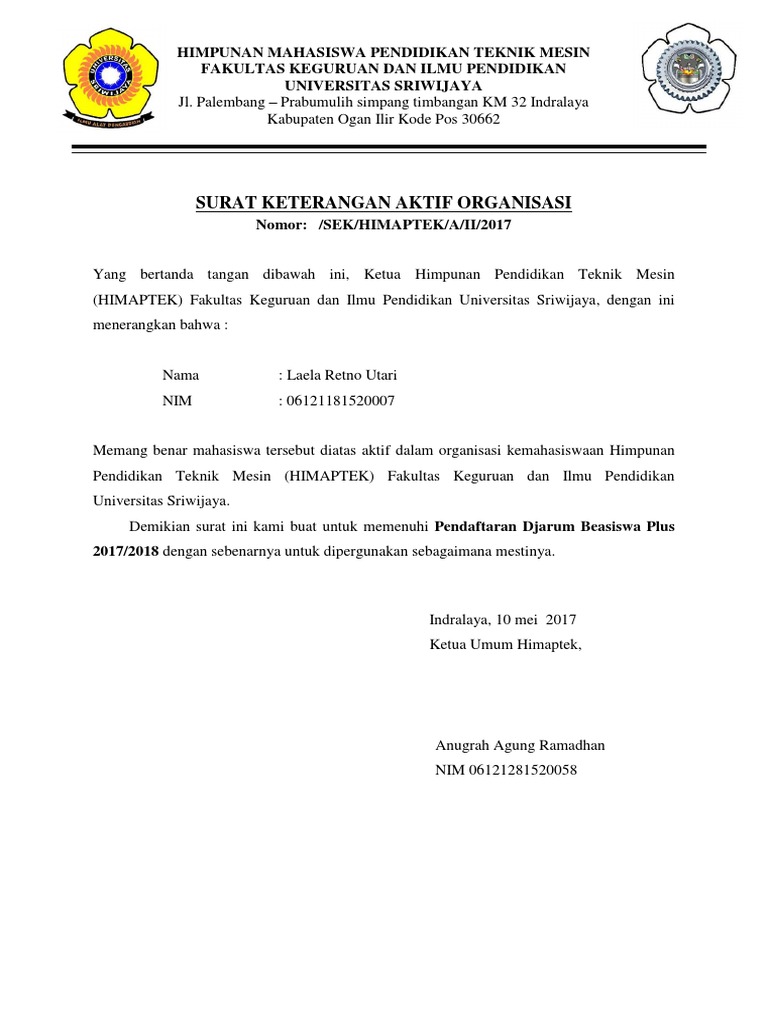 Contoh Surat Keterangan Aktif Anisasi Pdf Document
